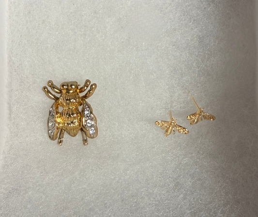 Deborah the Bee 18K Gold- Plated Brooch and Stud Earrings Bundle