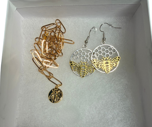 Deborah the Bee 18K Gold- Plated Brooch and Stud Earrings Bundle