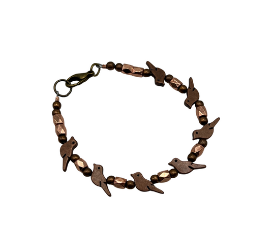 Sparrows Bracelet with Oxidized Copper and Rose Gold Faceted Beads