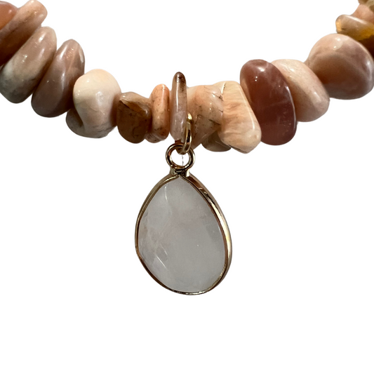 White and Grey Rutilated Quartz Stretch Bracelet with 18K Gold FindingsThe Bridal Call Collection Style 2