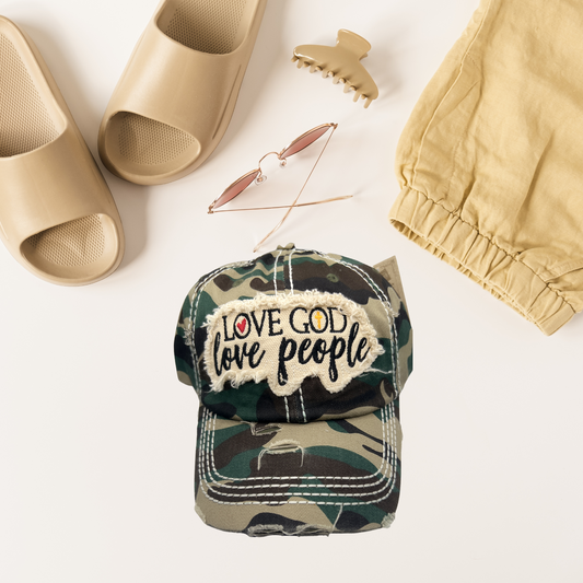 Love God Love People Vintage Style Hat Distressed - Multiple Colors Available