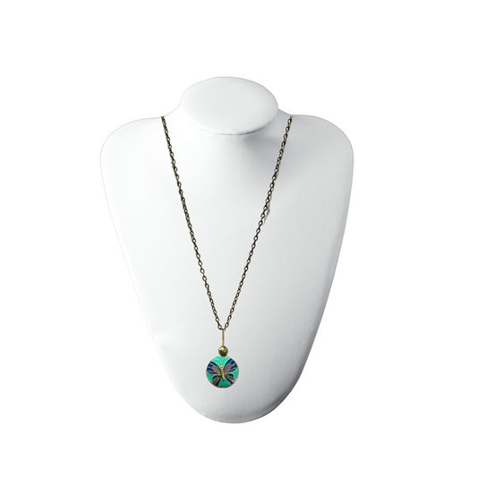 Butterfly Gold Tone Necklace with a Black Butterfly Glass Pendant