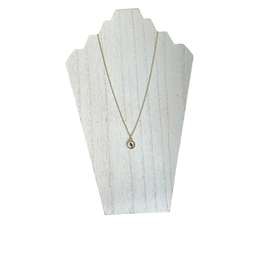 Sparrows Gold Tone Necklace with a Glass Transparent Black Sparrow Pendant