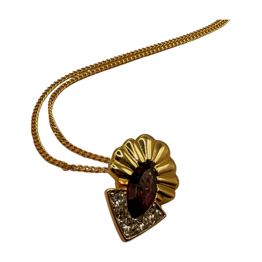 Purple Crystal Slider Teardrop Pendant with Gold Tone Chain Esther Rising