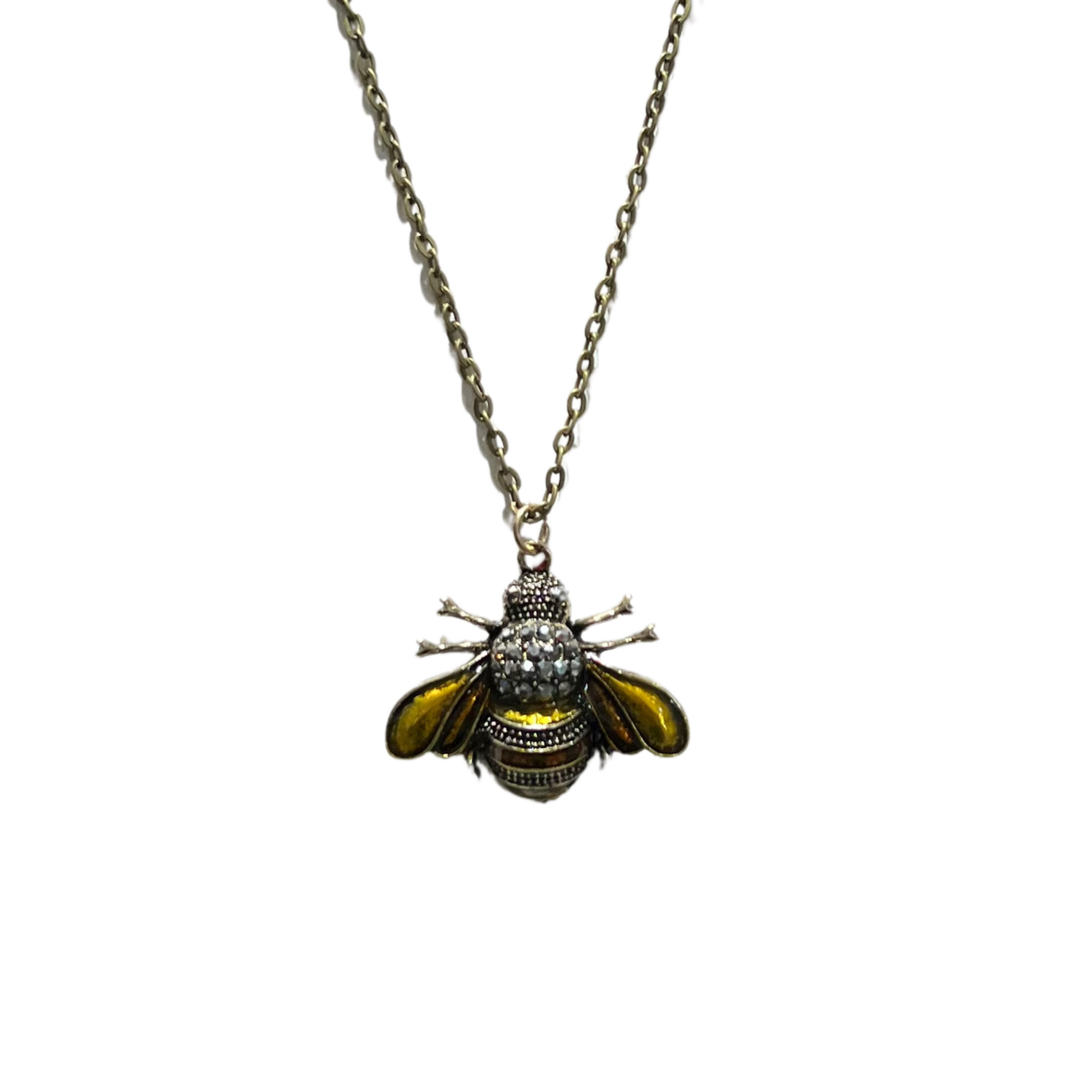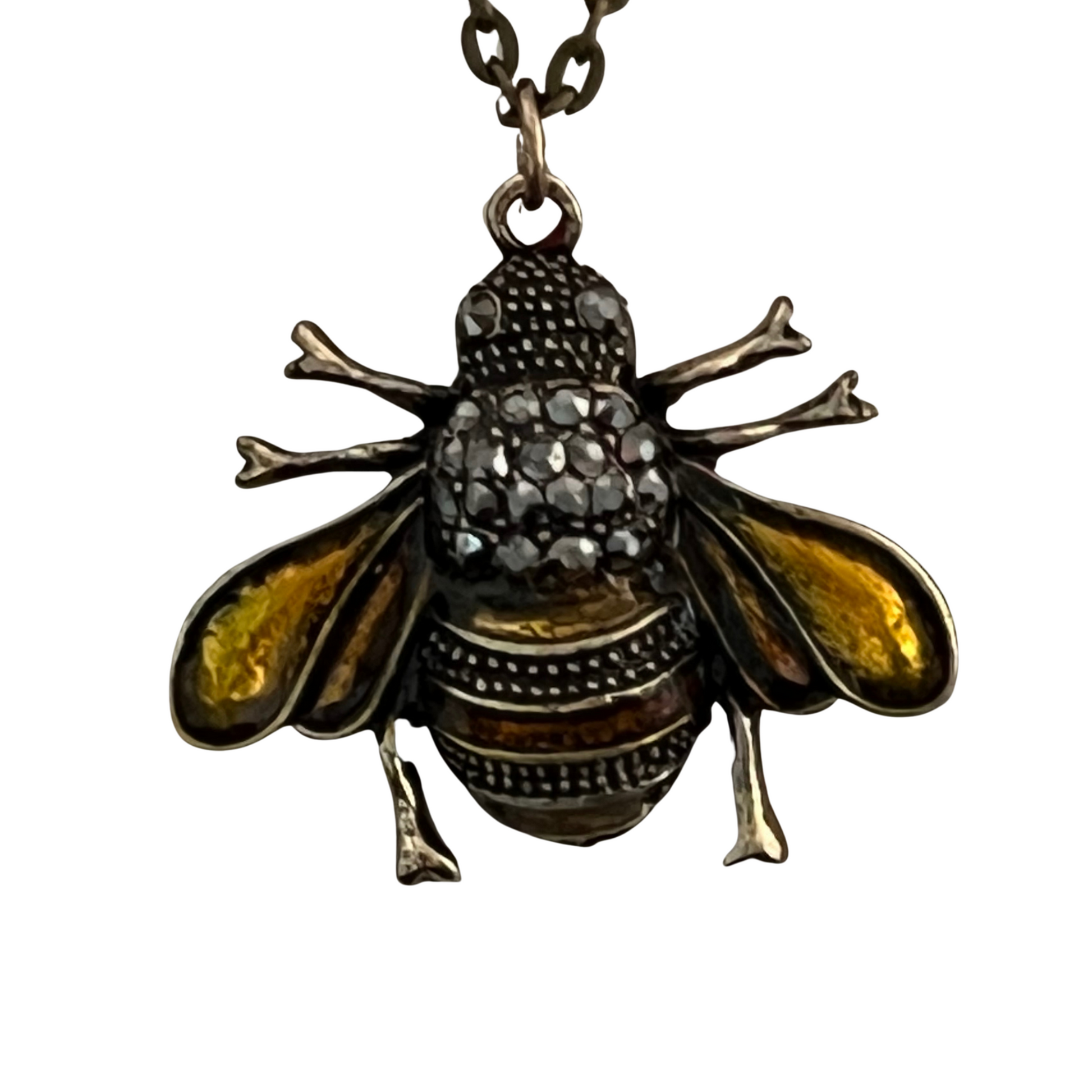 Cross Pollinator Rhinestone and Enamel Bumblebee Brass Necklace