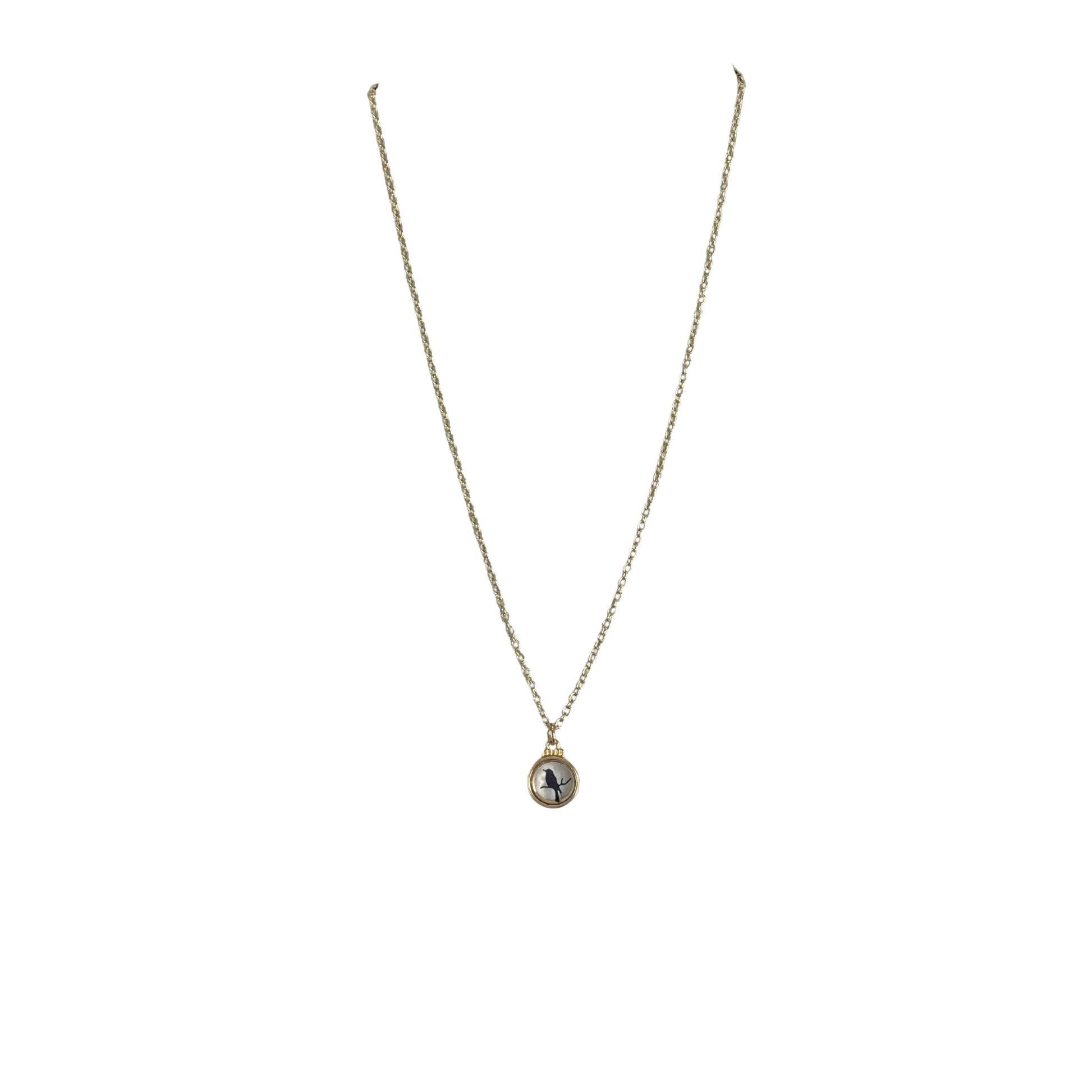 Sparrows Gold Tone Necklace with a Glass Transparent Black Sparrow Pendant