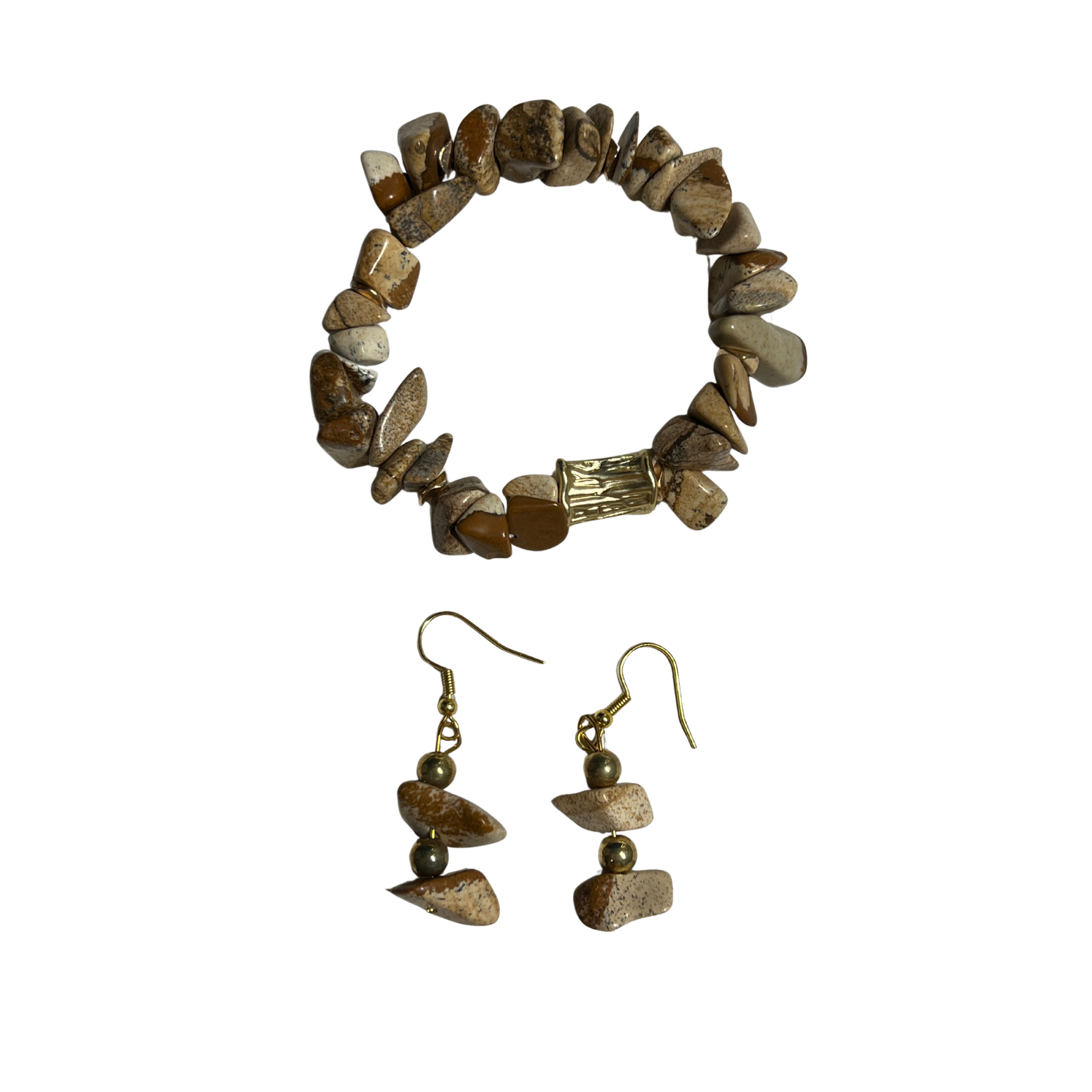 Stephen Bracelet and Earrings Set 18K Gold and Picture Jasper Stones