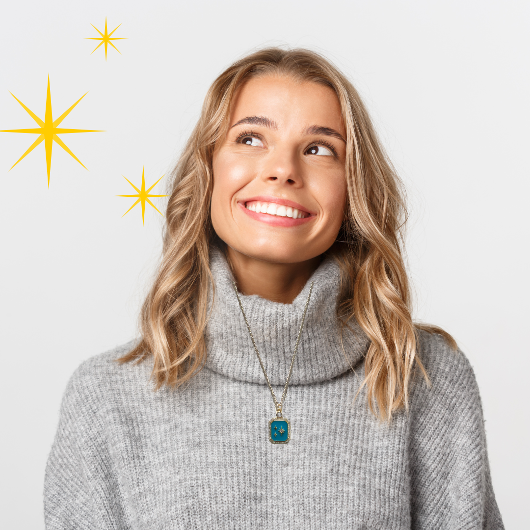 Crafted with turquoise-blue enamel, brilliant cubic zirconia, and elegant gold plating, the pendant features the symbolic Star of Bethlehem — the light that led seekers straight to Jesus.