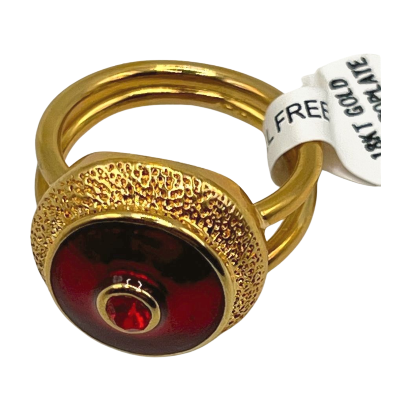 The King's Seal Red Enamel and 18K Gold Electroplated Dophin Ore Ring- Esther Rising